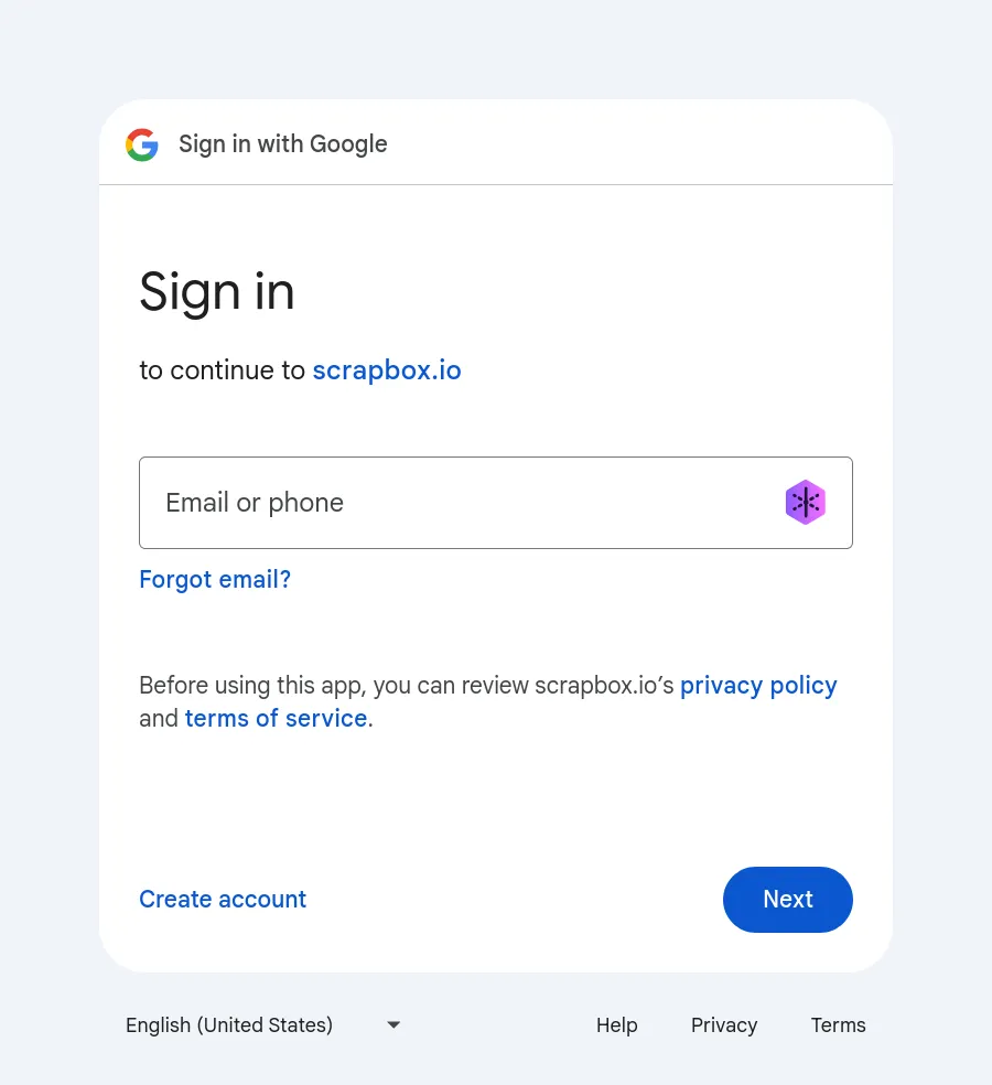 Enter the email address or phone number associated with the Google account you use for Cosense, and then enter the password.