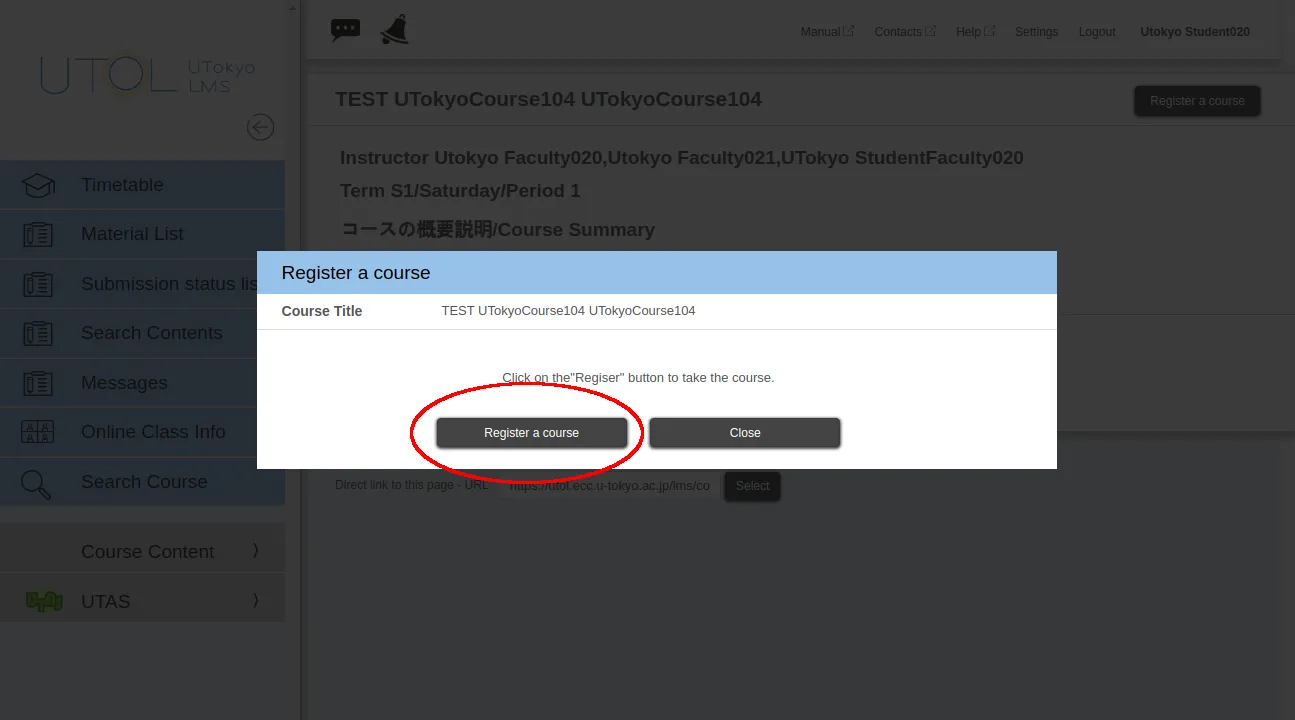 Even if you proceed with the “course registration” in UTOL, you will not be enrolled in the course. Therefore, if you need to enroll in a course, be sure to use UTAS (the academic affairs system) for enrollment registration.