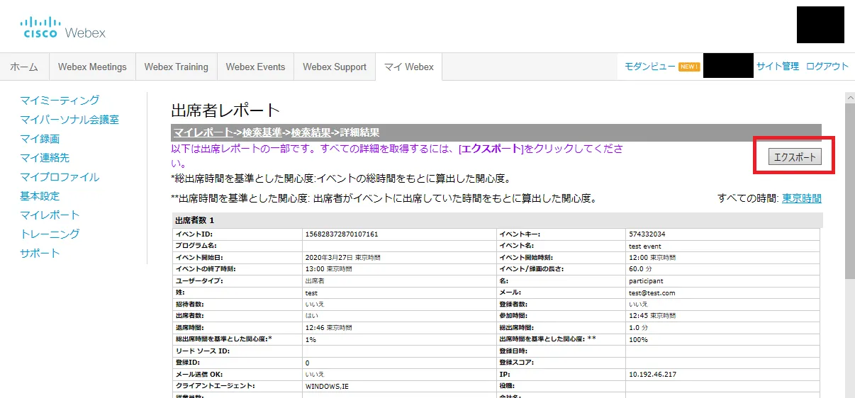 5. A list of participants’ attendance will be displayed. Click “Export” to download the displayed content as a CSV file.