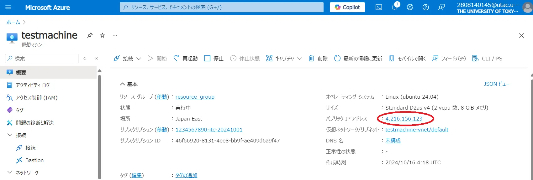 仮想マシン : UTokyo Azure 利用例