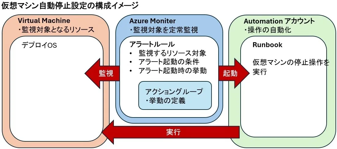 - 自動シャットダウンさせる対象を監視するサービス(Azure Moniter)
