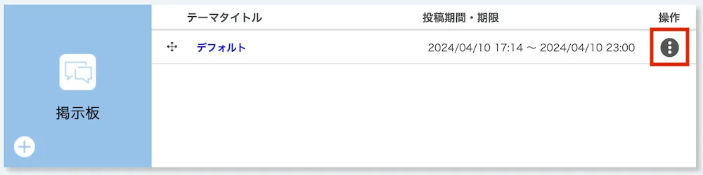 - 「掲示板」欄内で,編集・削除したいスレッドが属するテーマの右側にある