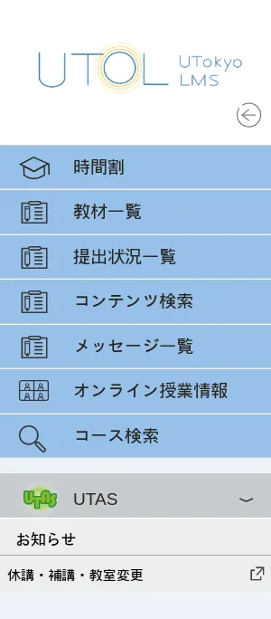 を押すと左側に表示されるメニュー)のUTOLのロゴか,「時間割」ボタンを押しても移ることができます.