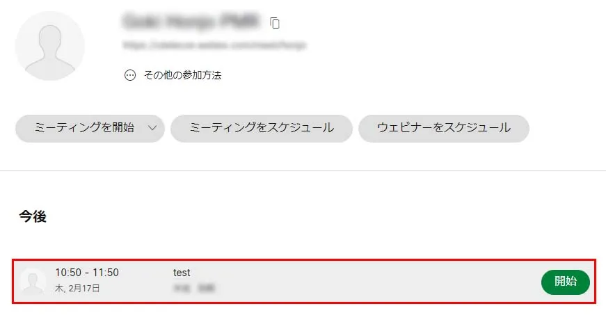 • 設定した日時が近すぎる(10分以内)と,「スケジュールする」ボタンではなく「開始」ボタンになり,すぐに会議が開始できます.