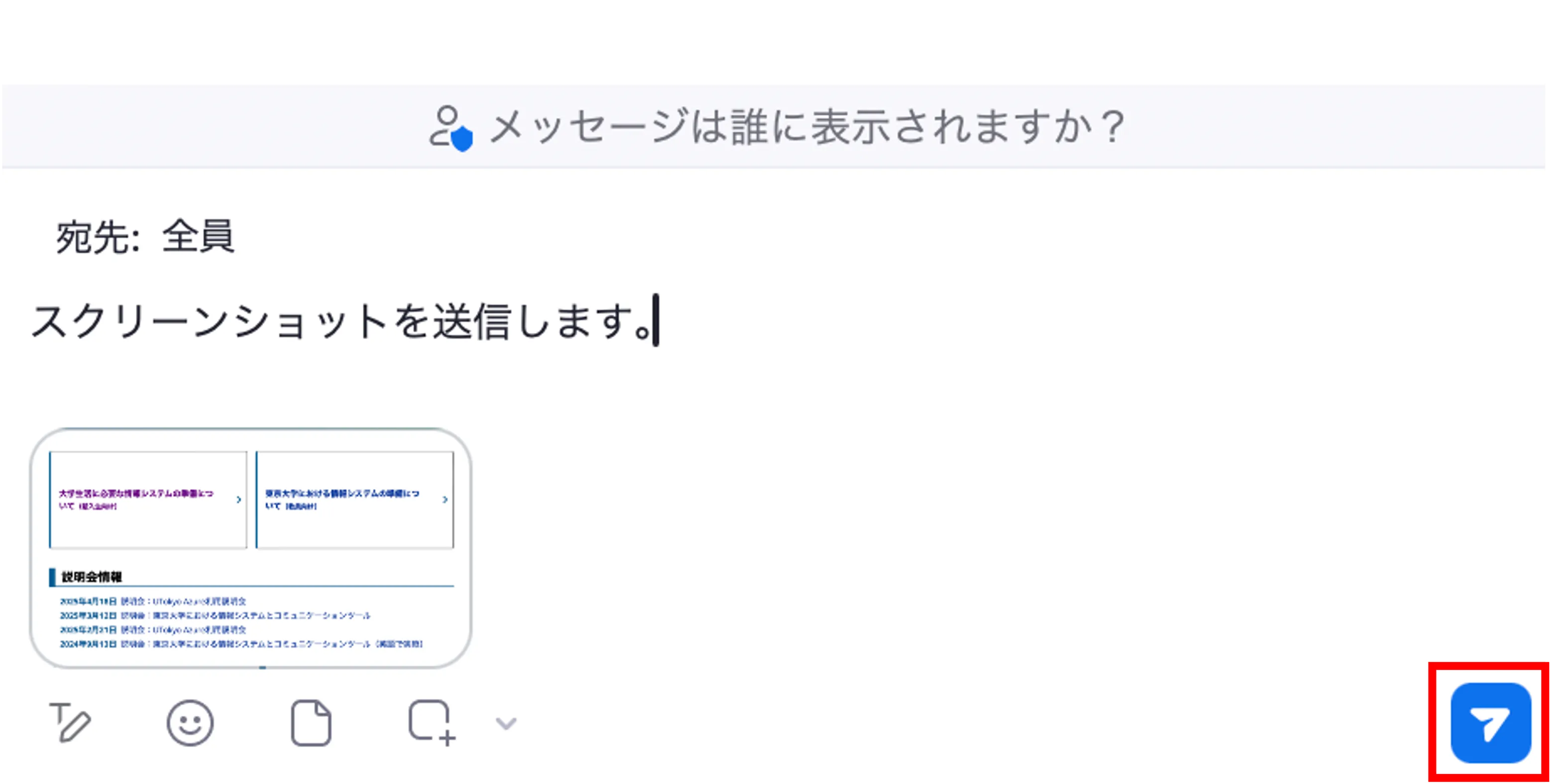 メッセージを入力し,送信アイコン(紙飛行機のアイコン)を押して送信してください.