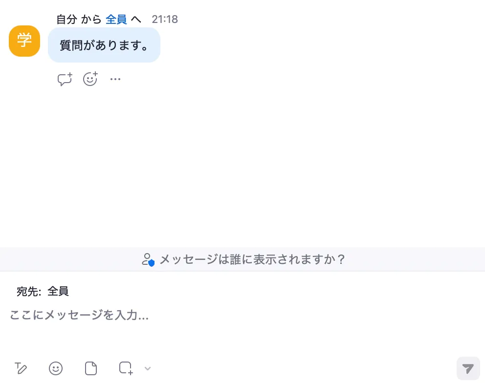 - 全員:参加者はミーティングに参加している全員に向けてチャットを送れます.
