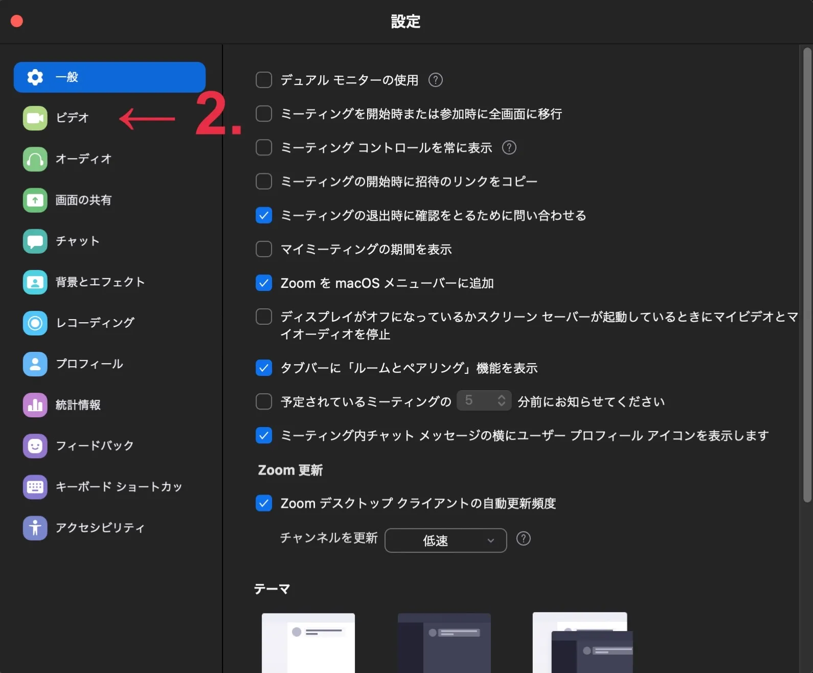 - 設定ウィンドウの左側から「ビデオ」を押してください.